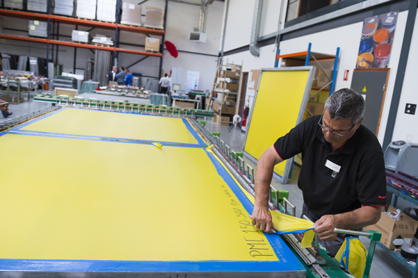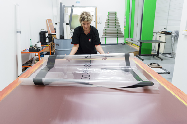 En fonction du nombre de cadres, de leur format et du cahier des charges client, nous effectuons la tension sur des tables à pinces pneumatiques...